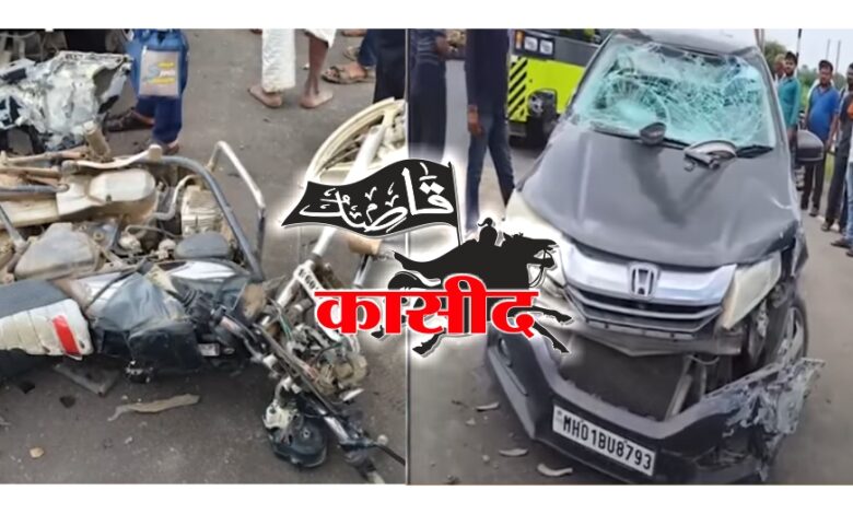 قاصد / ناندورہ : ناندرہ تعلقہ کے یرلی نئے پل پر ایک بار پھر ایک بھیانک حادثہ پیش آیا ہے۔ آج 28 ستمبر کو جلگاؤں جامود سے ناندورہ کی طرف تیز رفتار سے آنے والی ہونڈا سٹی کار (نمبر MH 01 BU 8793) نے مخالف سمت سے آنے والی موٹرسائیکل (نمبر MH 28 S 9093) کو زور دار ٹکر مار کر کچل دیا۔ اس بھیانک حادثے میں تیوڑی کے رہائشی راجو گھائٹ اور ان کا بیٹا منگیش گھائٹ شدید زخمی ہو گئے۔ انہیں فوری طور پر خامگاؤں کے جنرل ہسپتال منتقل کیا گیا، لیکن راستے میں ہی راجو گھائٹ کی موت ہو گئی۔ بیٹے منگیش گھائٹ کی حالت تشویشناک ہے اور اسے مزید علاج کے لیے اکولہ منتقل کیا گیا ہے۔